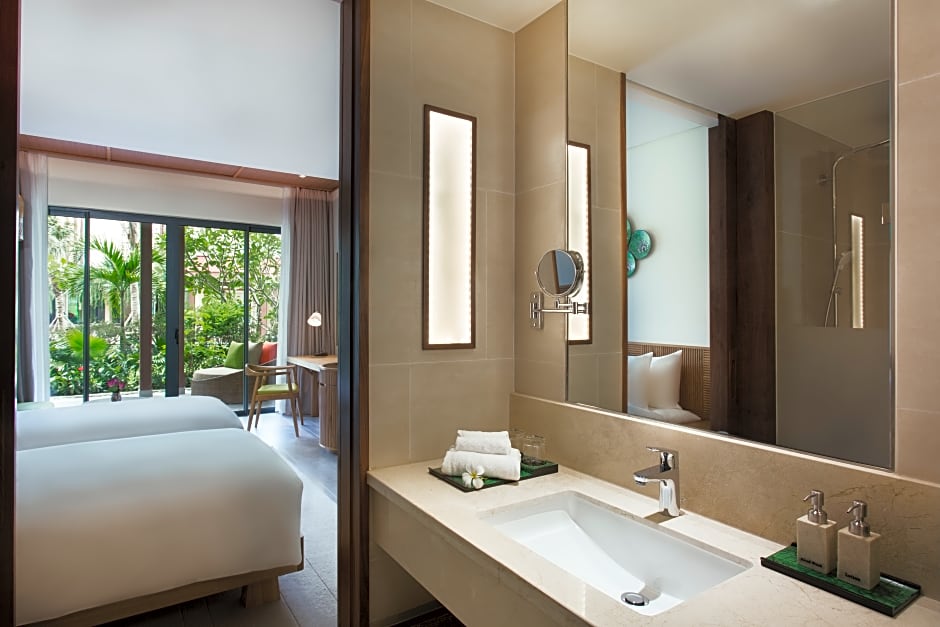 The spacious twin room features air conditioning, a mini-bar, a terrace with pool views as well as a private bathroom boasting a walk-in shower. The unit has 2 beds.